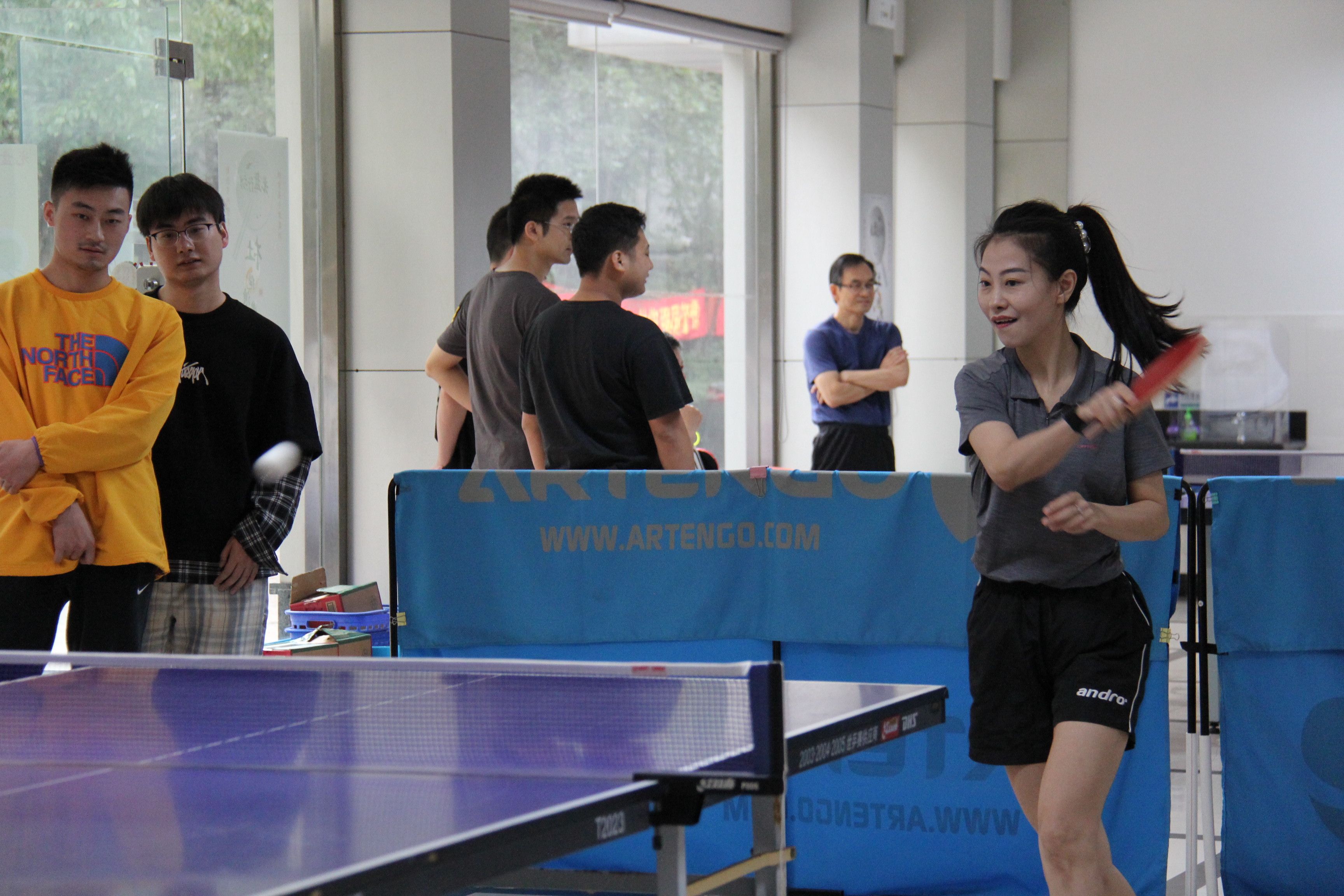 运动会接近尾声,乒乓对决把运动会推向了高潮,小小的乒乓球宛若精灵,在运动员们推挡、提拉、上旋、下旋、弧圈、削球、扣杀下,神出鬼没,令人目不暇接,参赛队员的呐喊声、队友的加油助威声、观众的叫好声响成一片。
