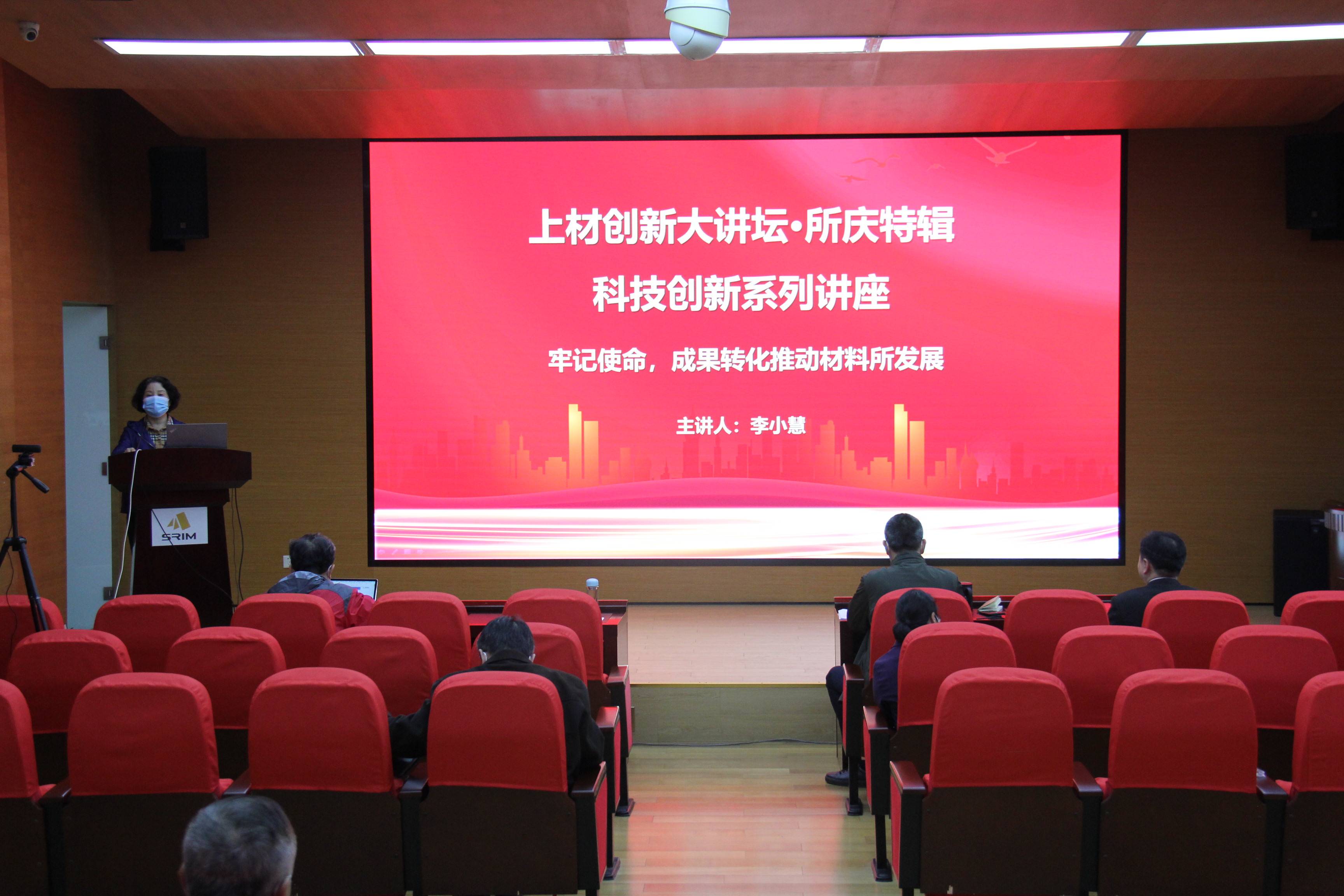 为迎接党的二十大胜利召开、庆祝建所76周年,2022年10月14日下午,我所通过线上线下相结合的方式举办上材创新大讲坛所庆特别讲座,由副所长李小慧同志作“牢记使命,成果转化推动材料所发展”主题报告,全所干部职工约150人参加。