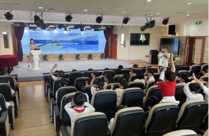 党员志愿者张诗悦从地震的危害、桥梁的减震(振)抗灾和建筑的减震(振)抗灾几方面为师生们上了一堂防灾减灾知识科普课。科普以港珠澳大桥和上海中心两个国家重点工程为切入点,通过直观形象的视频内容向学生们讲解在桥梁和建筑上是如何运用阻尼器实现减震(振)抗灾,通过邀请同学共同完成电涡流阻尼科学小实验,深入讲解世界首创上海中心电涡流调谐质量阻尼器技术的原理。活动最后还开展了地震常识小测试,以互动问答的形式让学生了解常见的地震灾害及预防自救、自护常识,帮助学生树立应急避险自救互救意识。同学们热情高涨,现场气氛活跃,问答过程中还向师生赠送了《我的房子为什么在抖》等儿童书籍。