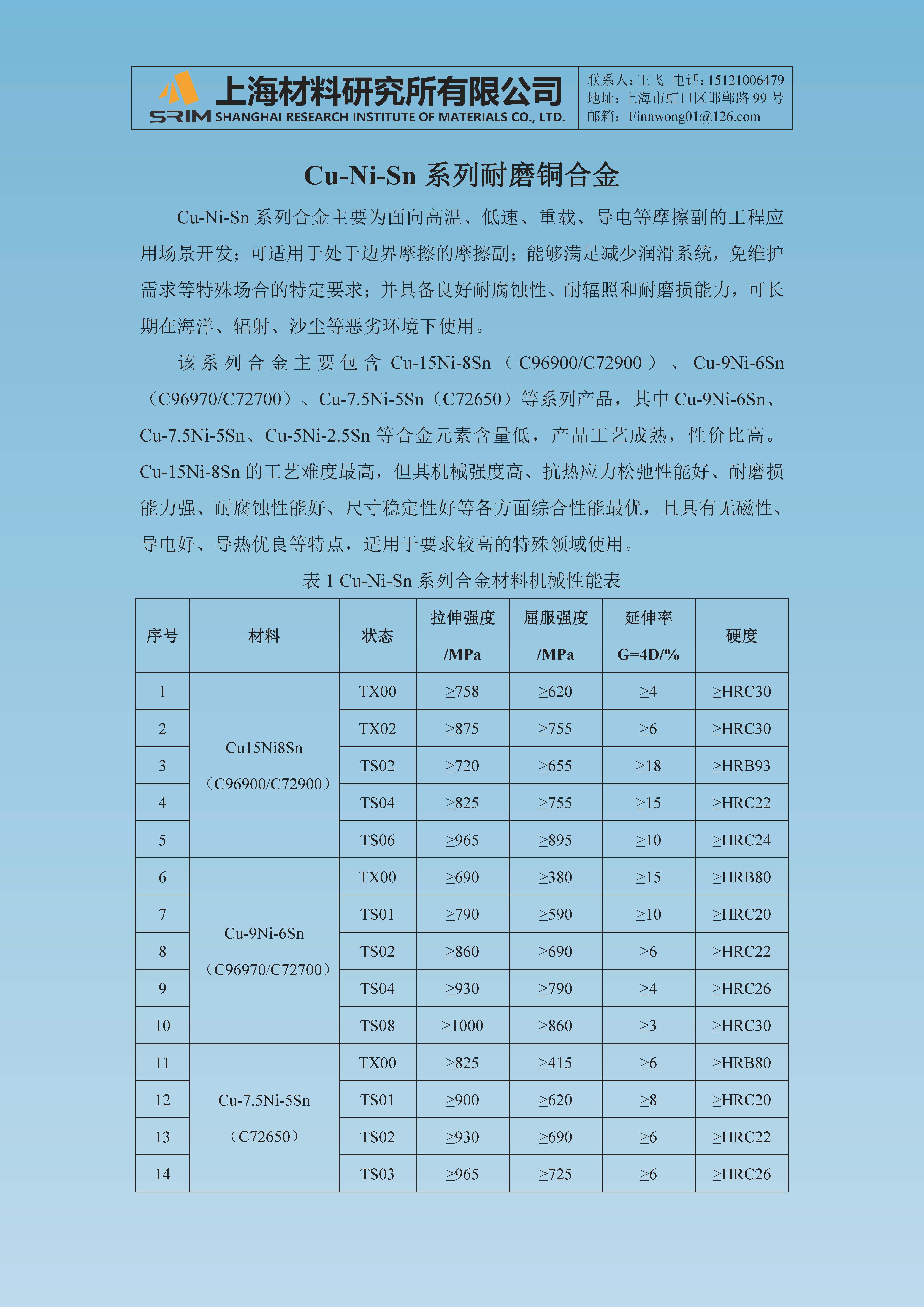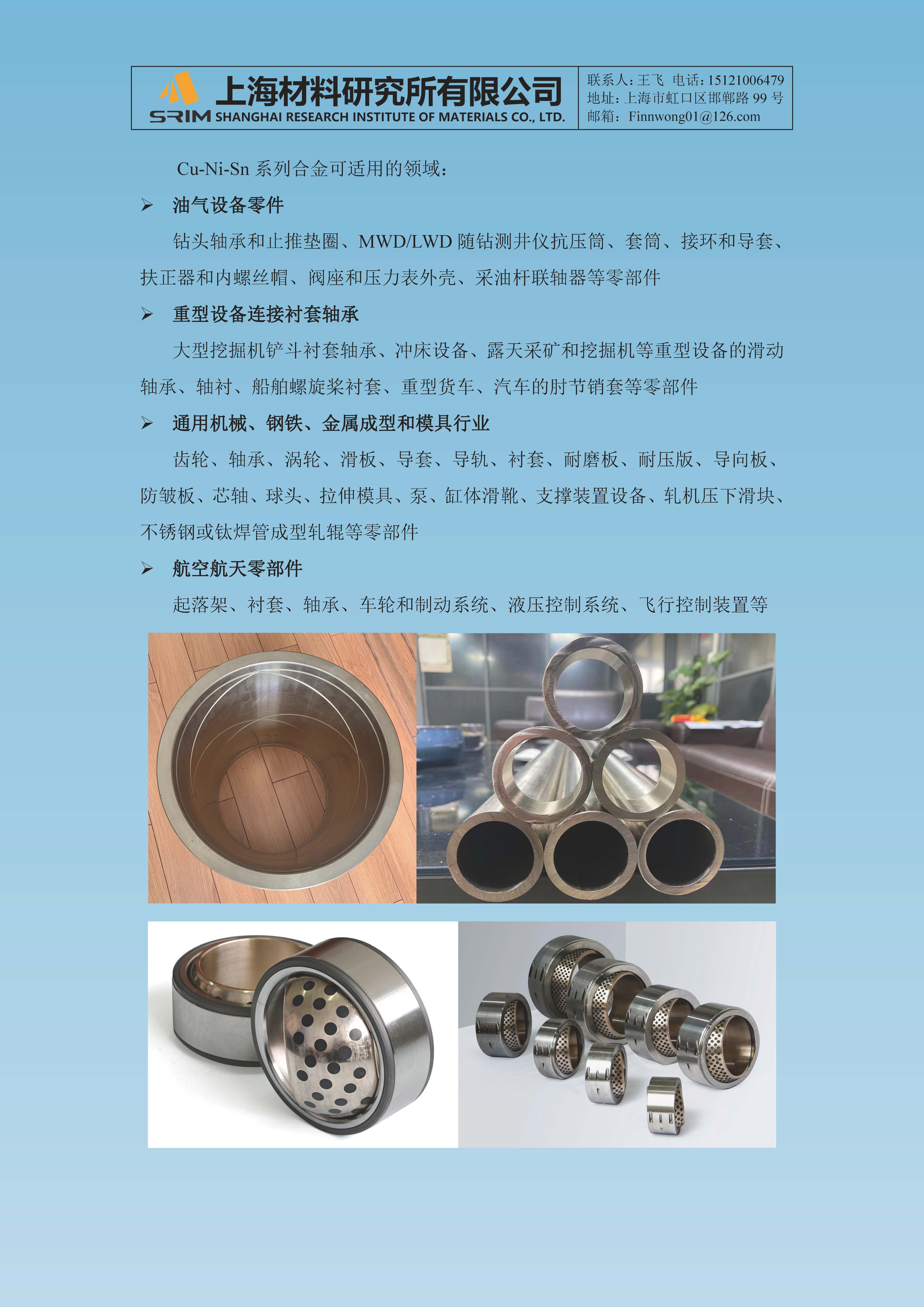 Cu-Ni-Sn系列耐磨铜合金 首页 减摩耐磨材料Cu-Ni-Sn系列耐磨铜合金 Cu-Ni-Sn系列耐磨铜合金 Cu-Ni-Sn系列耐磨铜合金 分 类:减摩耐磨材料 - Cu-Ni-Sn系列耐磨铜合金 产品详细