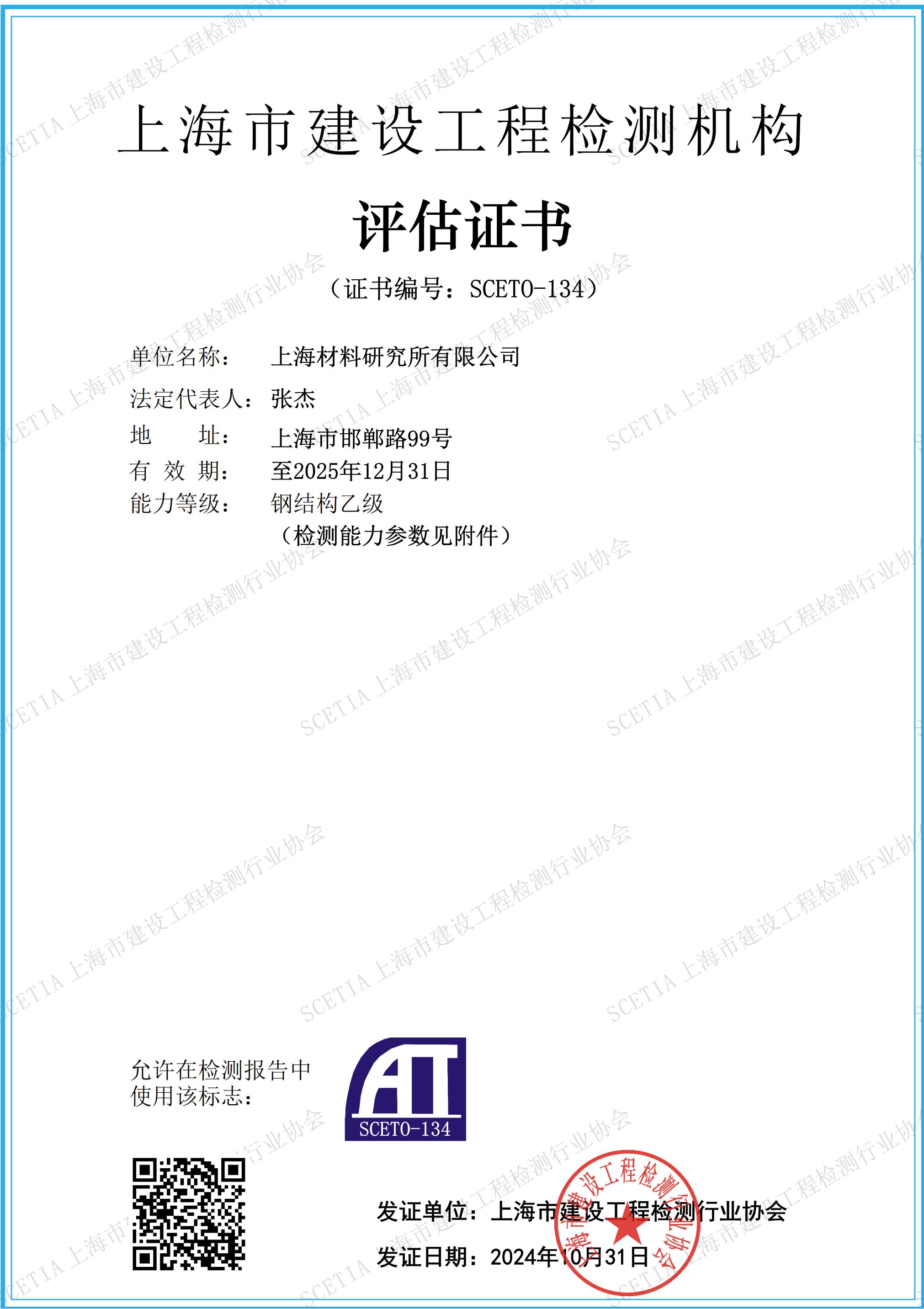 上海市建设工程检测机构评估证书-2025.12