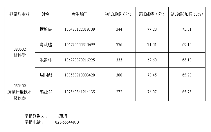 新闻公告 News 新闻动态 公告通知 2020年上海材料研究所硕士研究生拟录取名单公示 发布者:2020-06-15阅读数: 上一篇:我所3D打印材料工程技术研究中心卢林入选“2020年度上海市青年科技启明星计划” 下一篇:关于对《焊缝无损检测 超声检测 奥氏体钢和镍基合金焊缝检测》等三项国家标准征求意见的通知